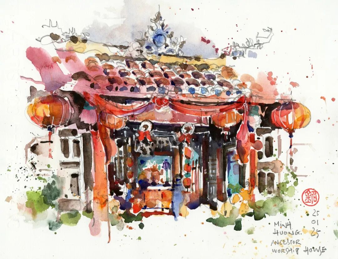 Pen watercolor painter from Singapore