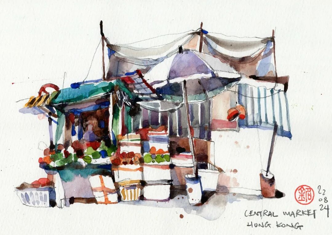 Paul wang's vivid brushwork on the bustling street
