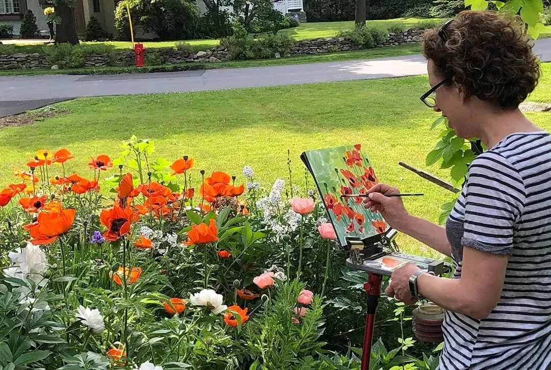 △ Shari is now a teacher-artist, often taking students out to sketch outdoors, regardless of age or gender