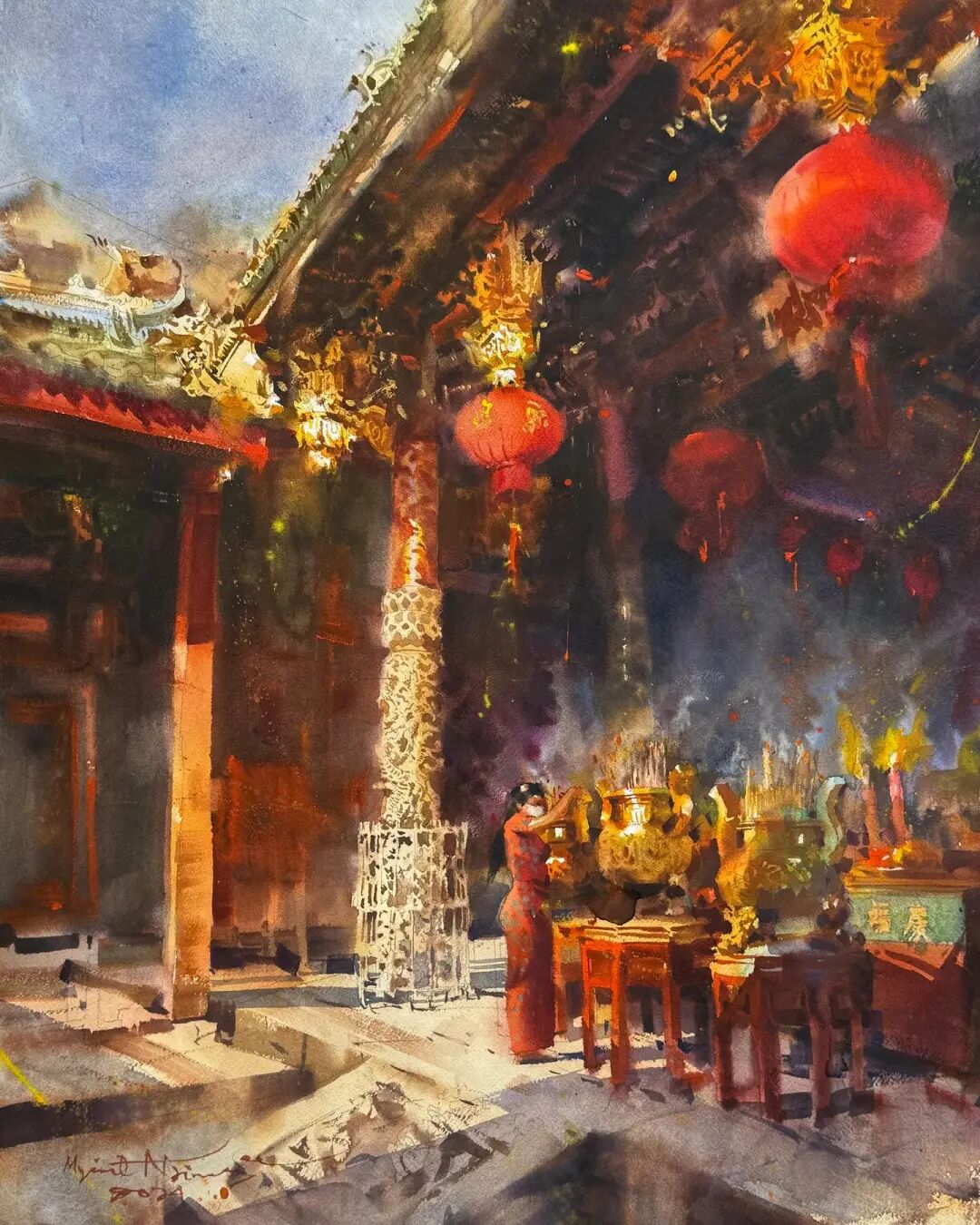 He can always feel his deep understanding and application of watercolor in the wild brushstrokes and colors