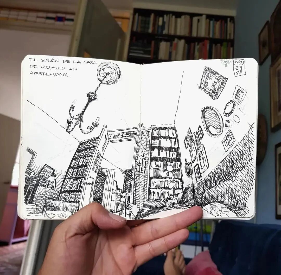 Impromptu sketches turned his sketchbook into a diary
