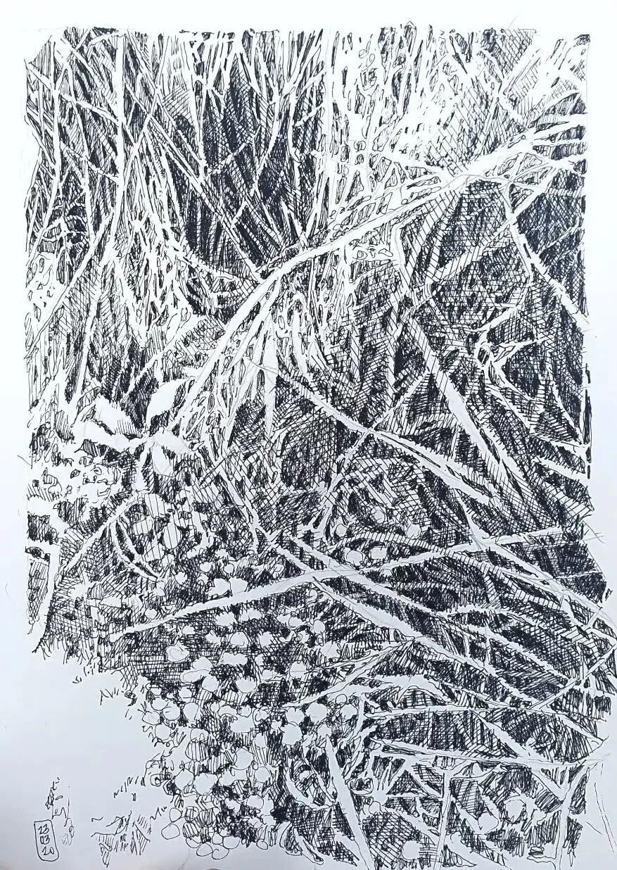 He will use the density of lines to create a landscape painting
