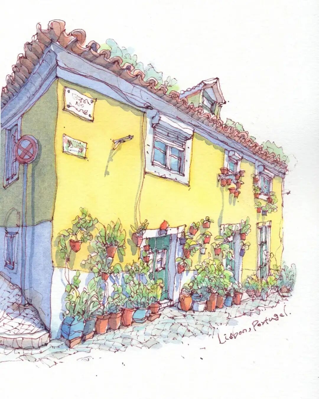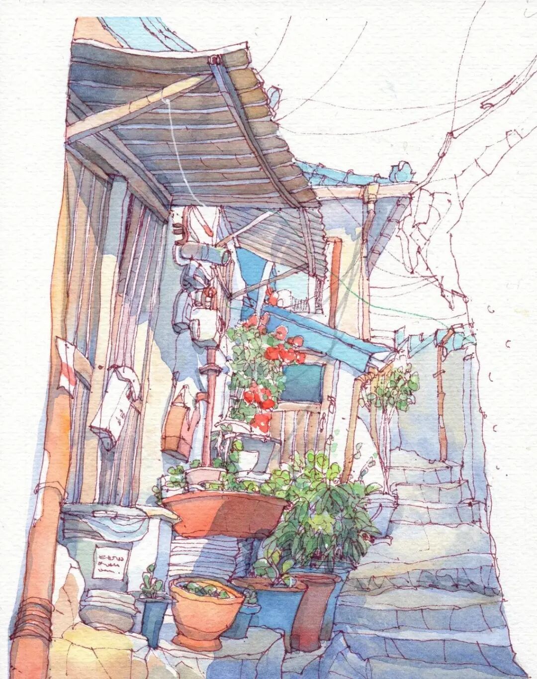 Record the flowers and plants in front of the house on drawing paper,