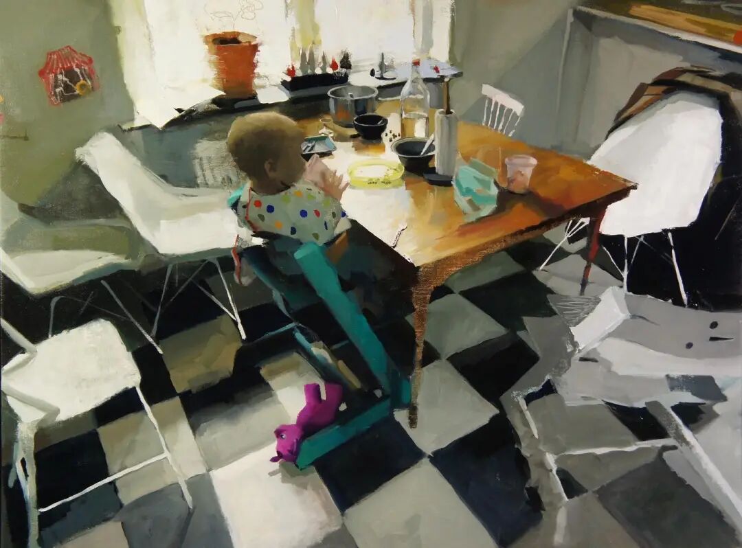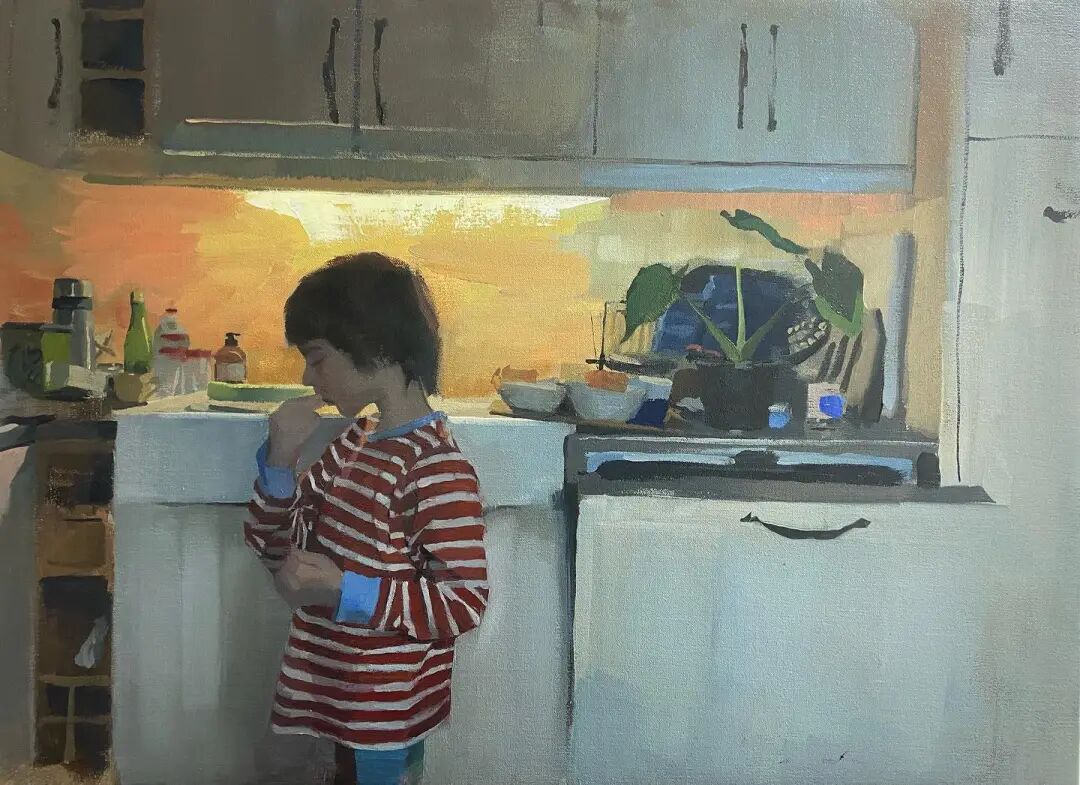 When Gustav lived with his wife, this was a small world of two people, but when Gustav's first son was born, it became a new family of three people, which added many unpredictable changes to the theme of the creation. Fortunately, Gustav has just given birth to his second son, which gives his family oil painting a lot of inspiration.