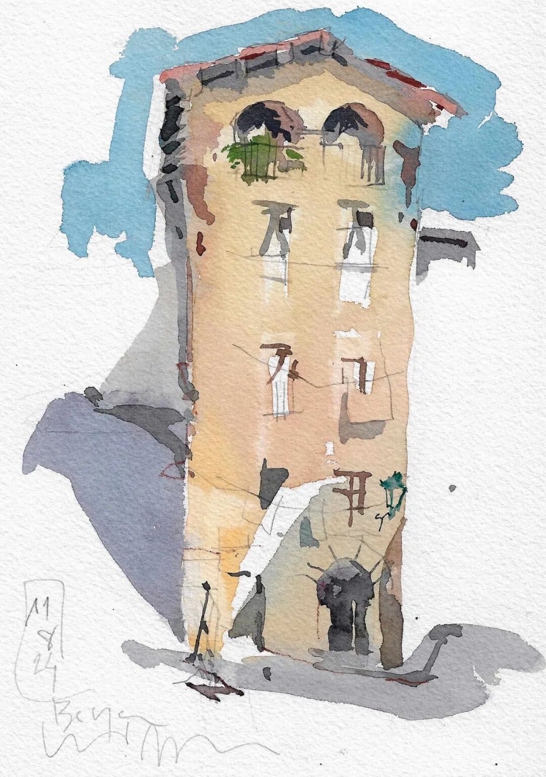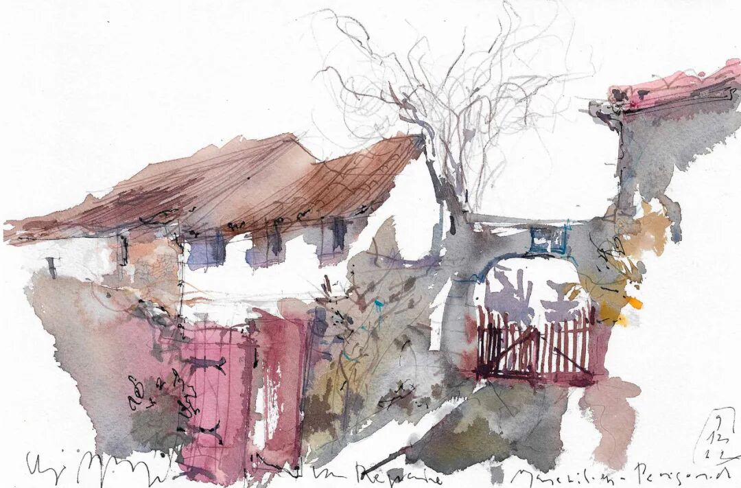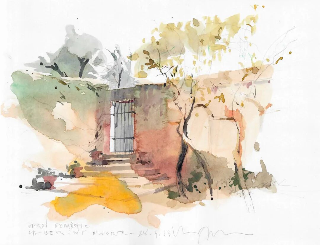 There are no figurative people in his watercolors,