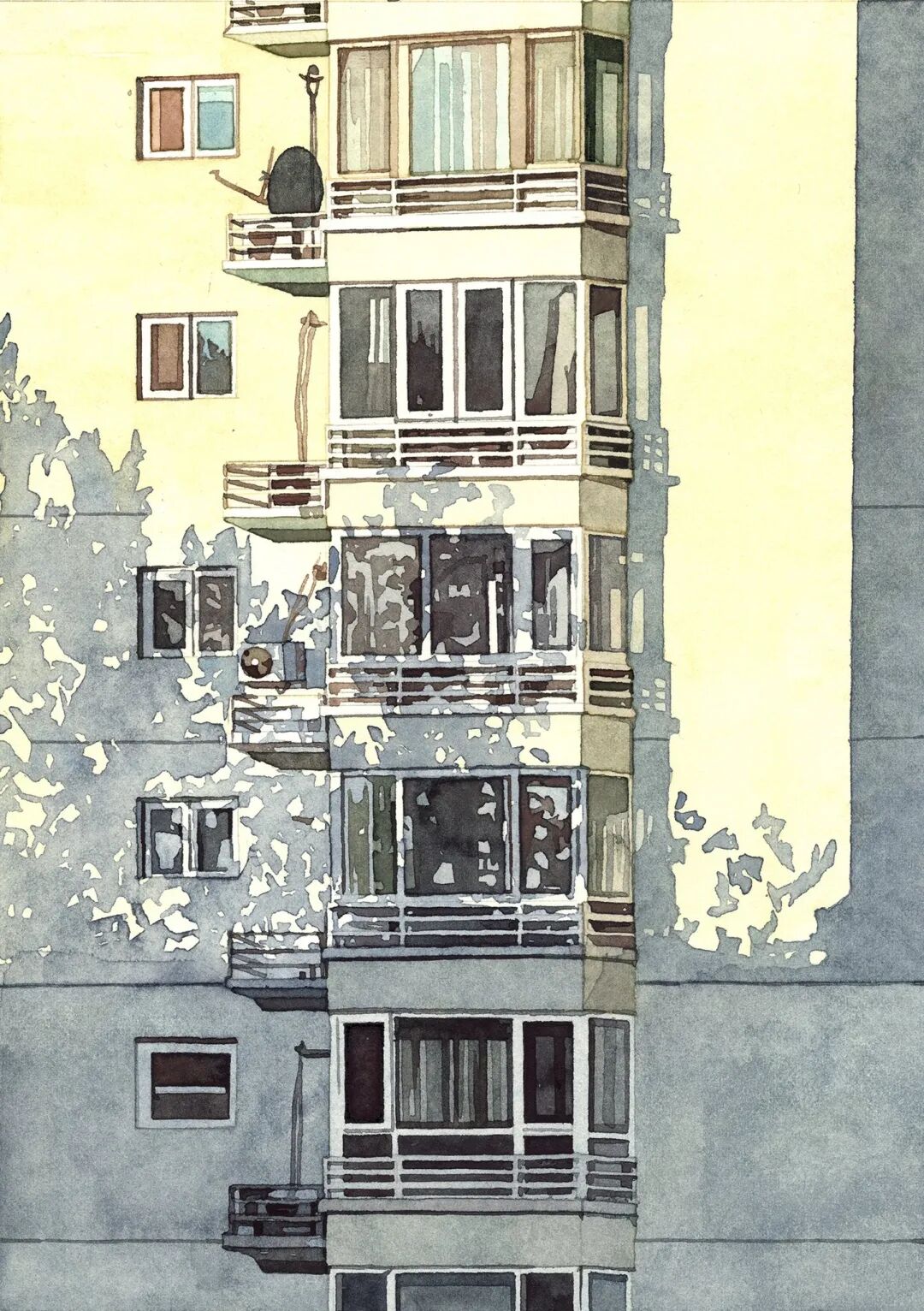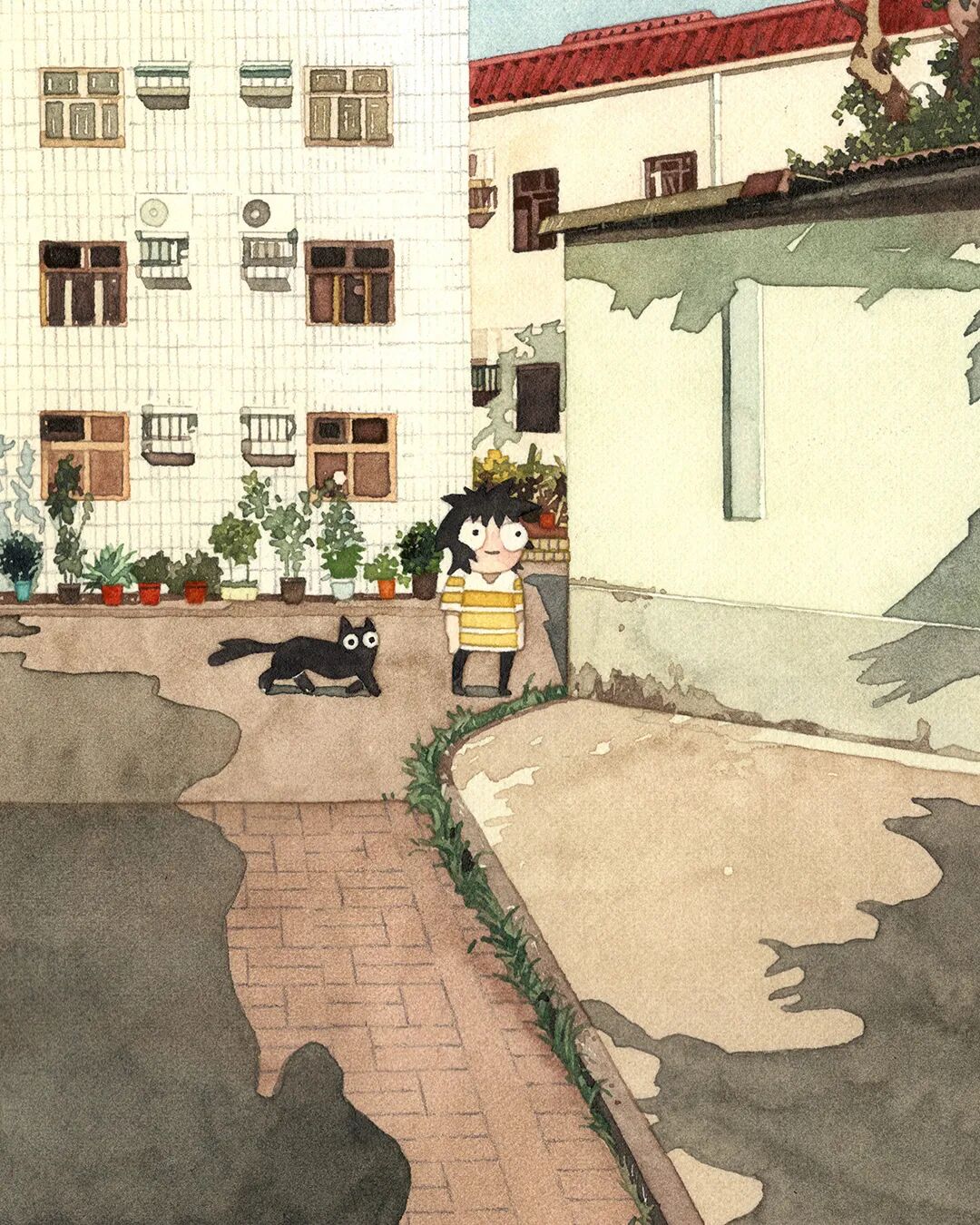 GEGYjiji captured with delicate watercolors The quiet loneliness of modern life.