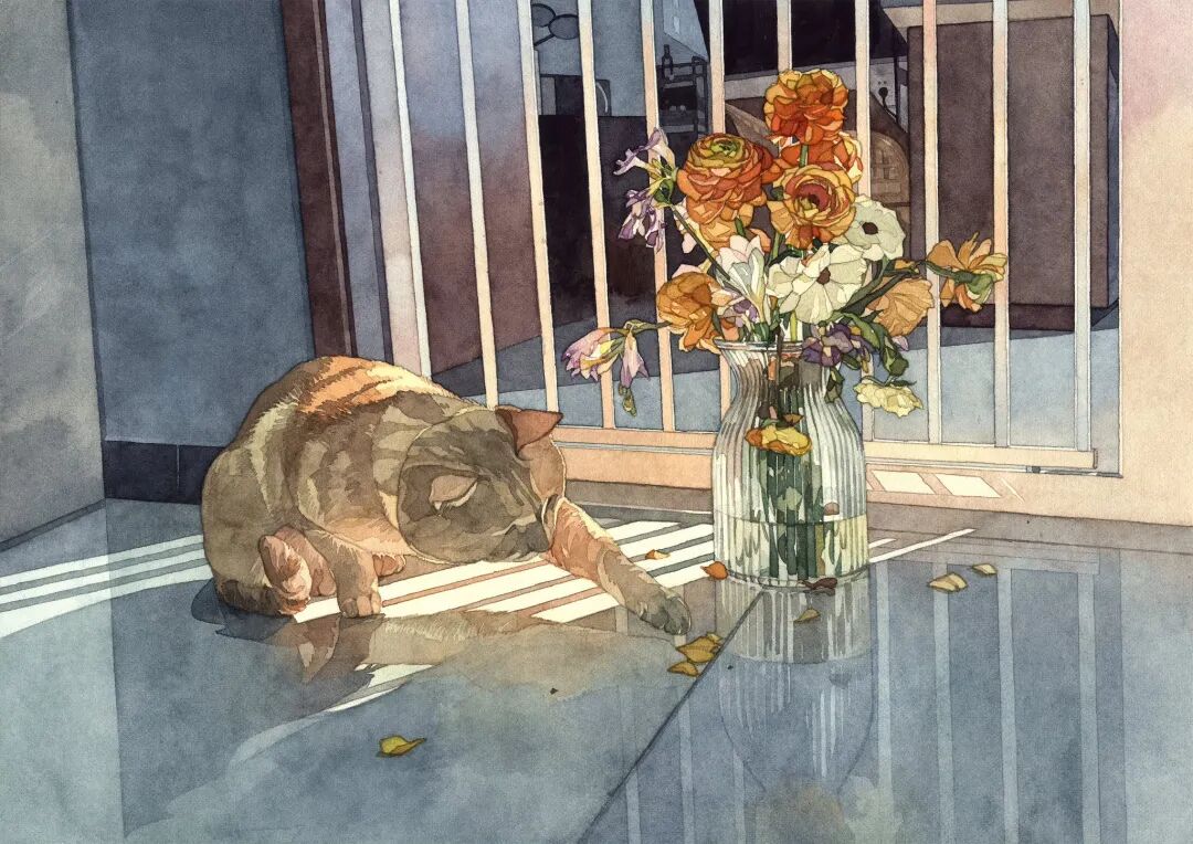 She also emphasized that the source of each work is her careful design, Through the watercolor technique of manual PS effect, it vividly shows that natural light sprinkles through the window, casting soft shadows, adding depth and layering to the picture.