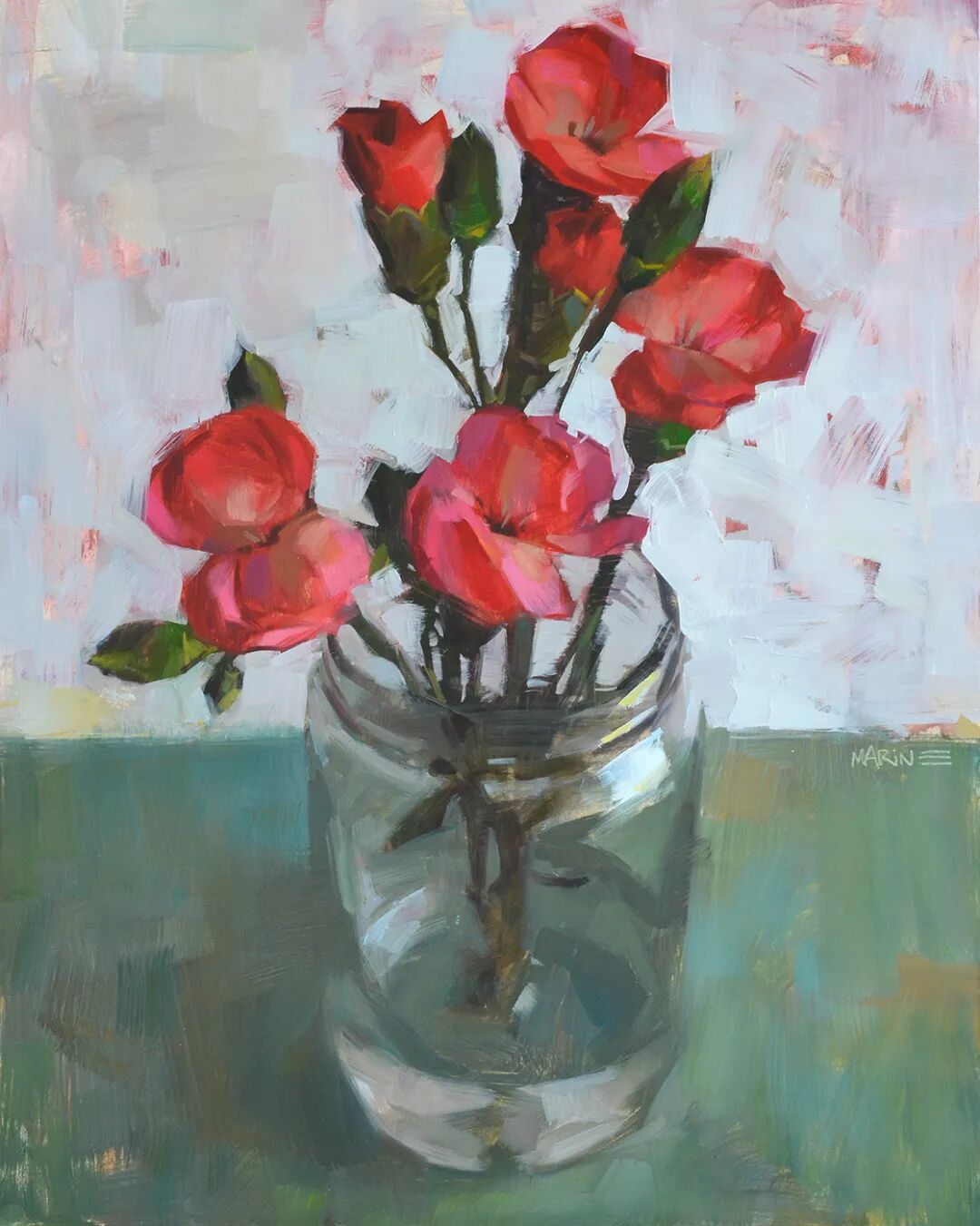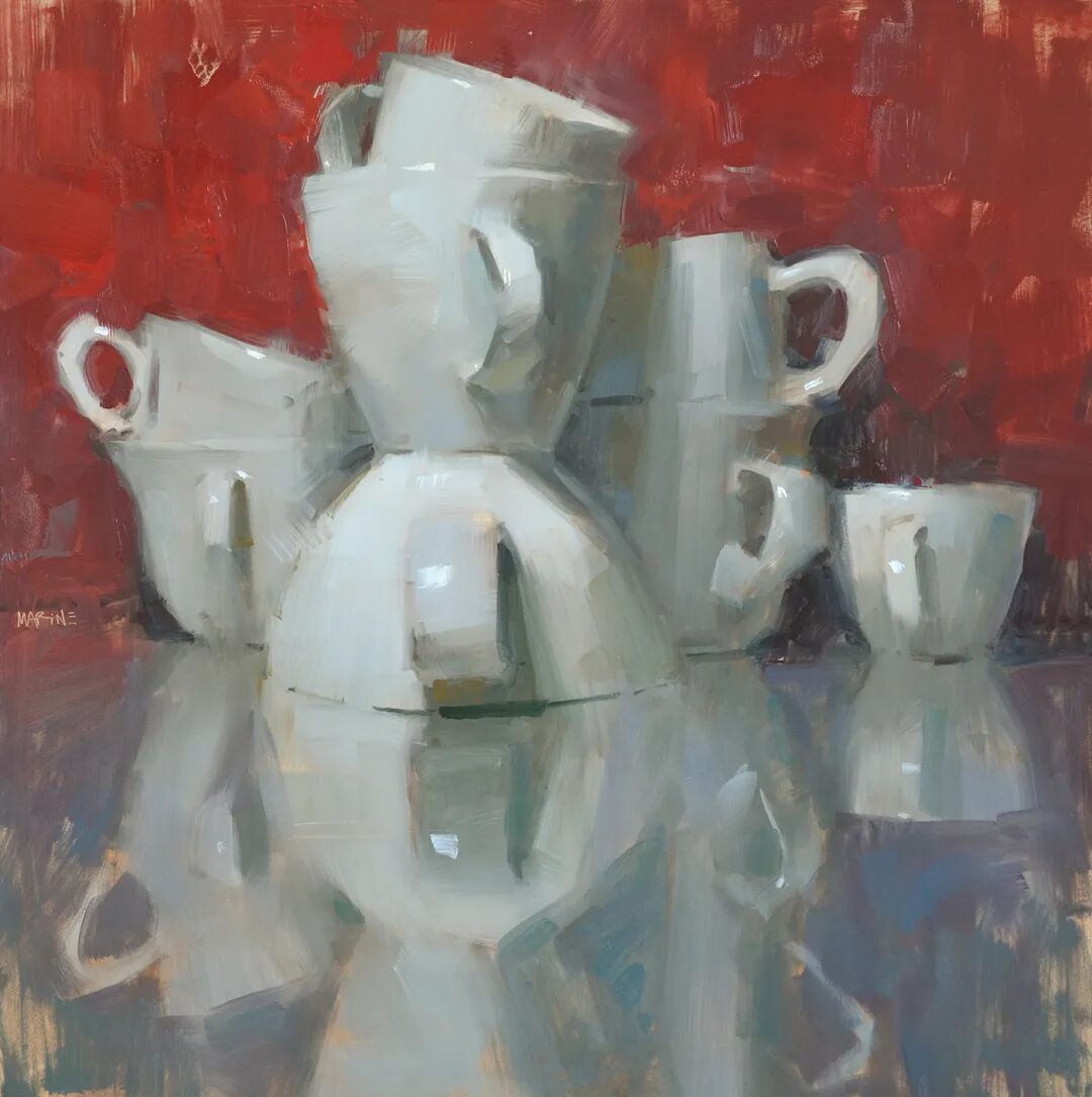 The brushwork in Carroll's paintings is very classic