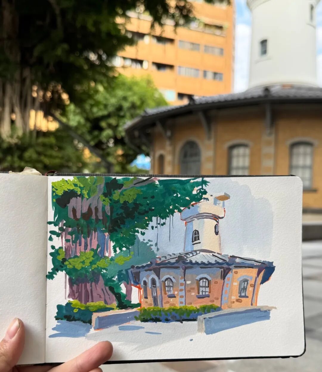 The sketch of ideas shared in Yoshito's informal work is simply a common landscape painting in daily life. Yoshito paints it in the simplest way.