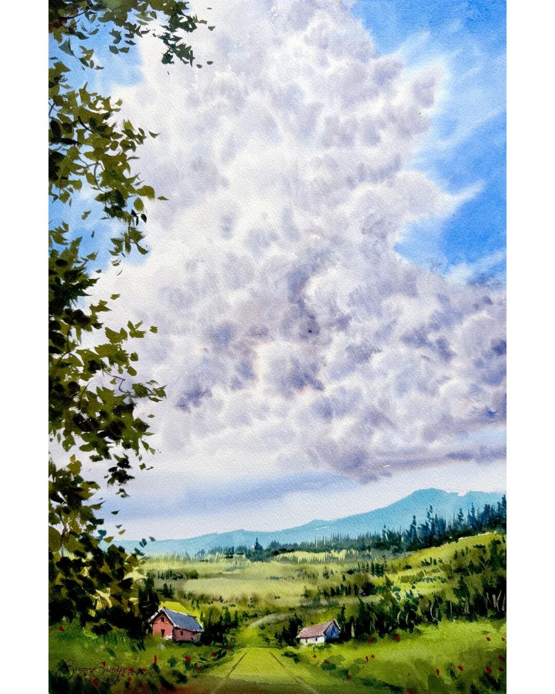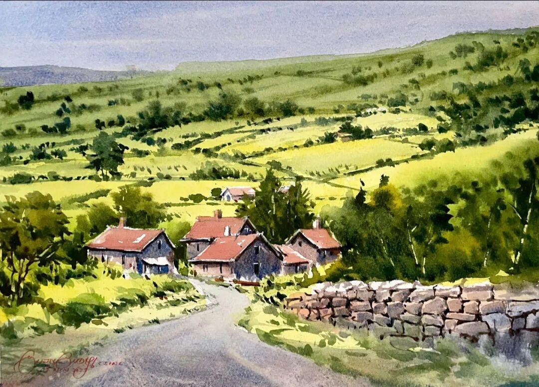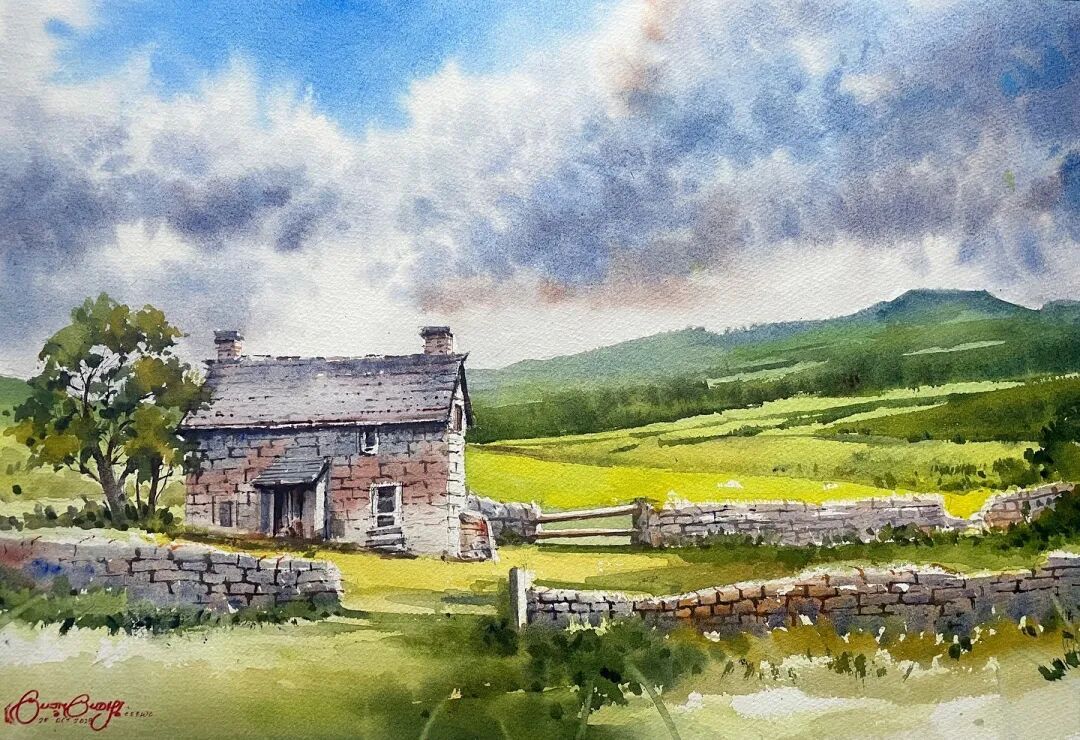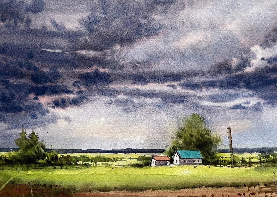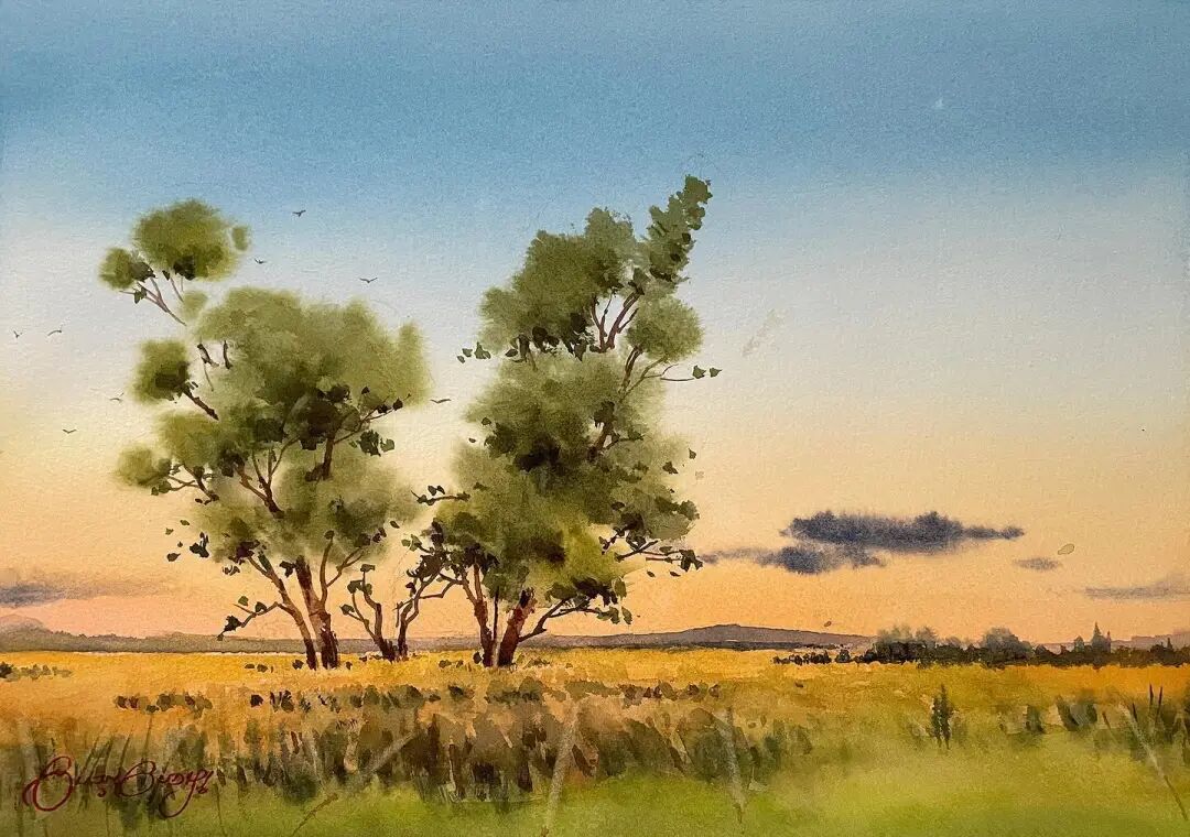 His watercolor landscapes are simple