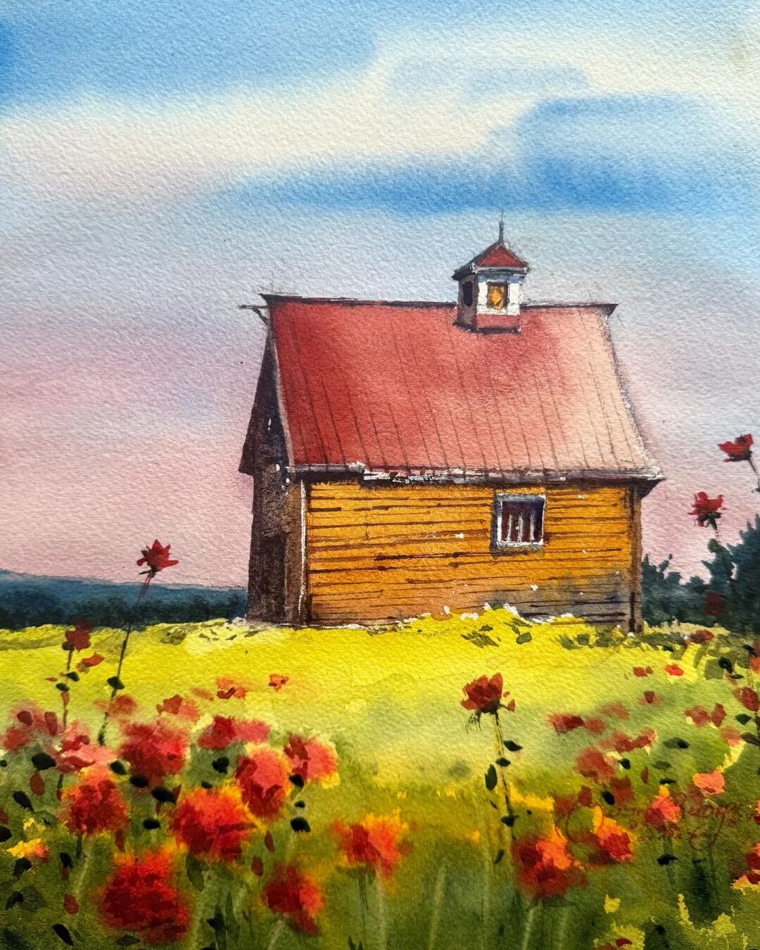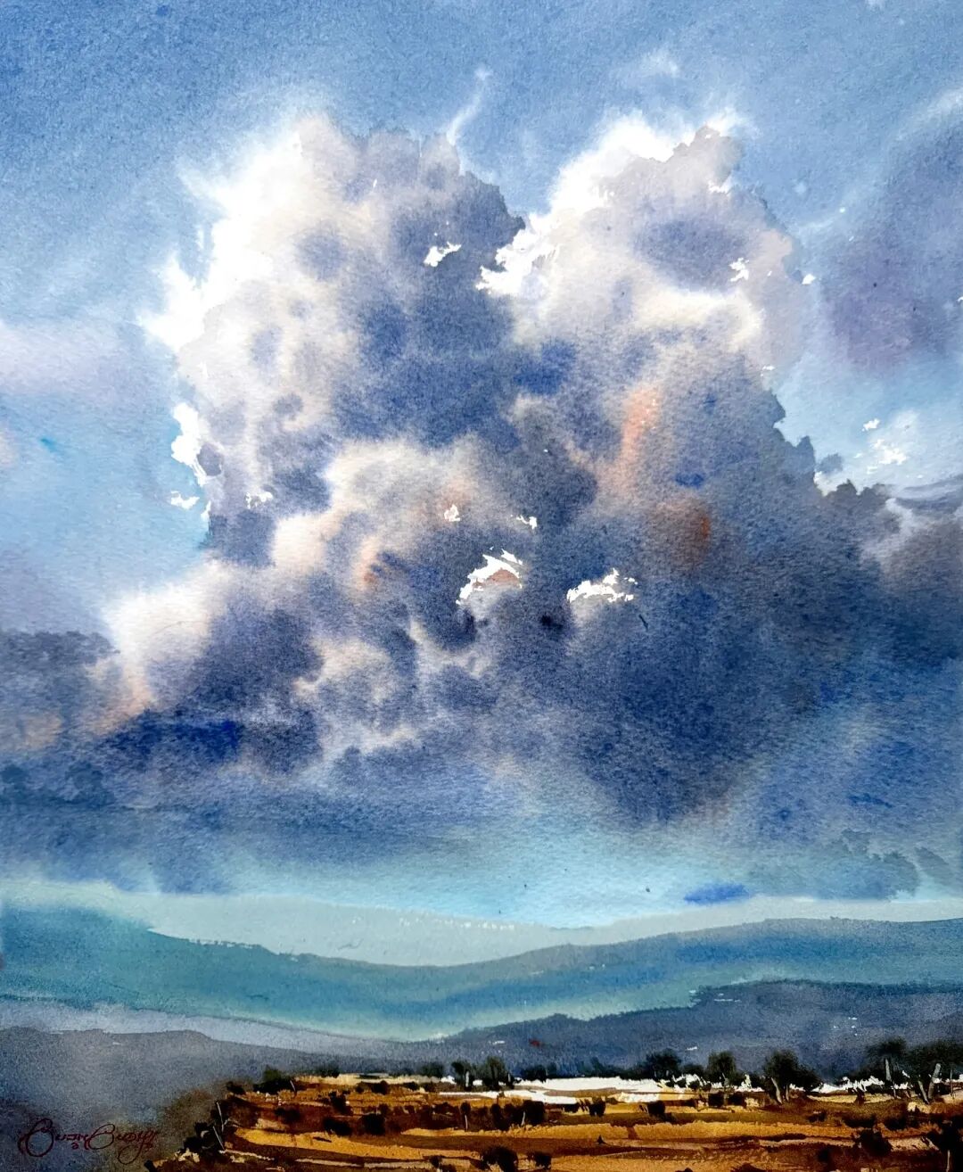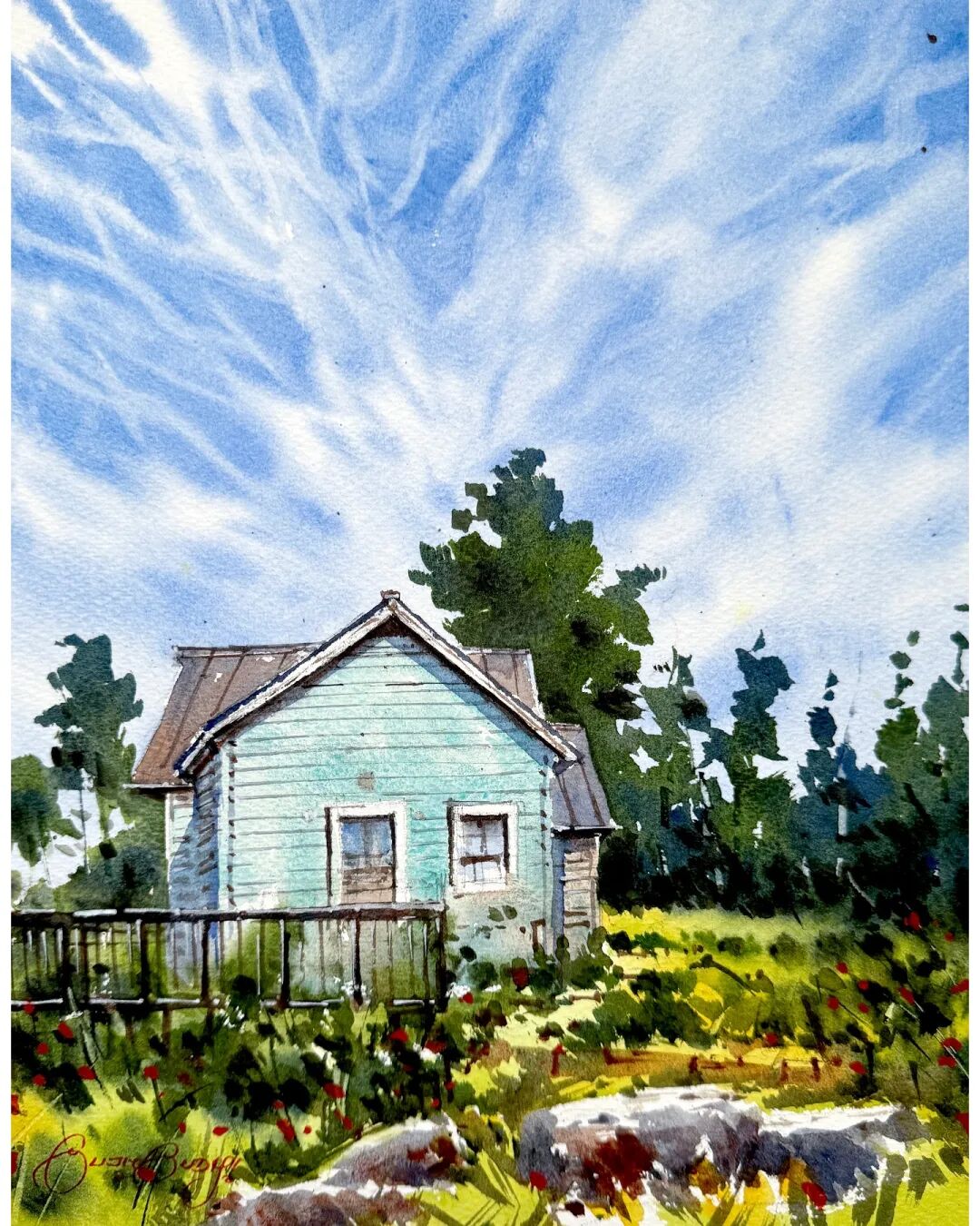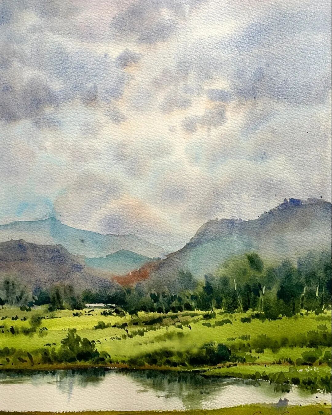 His watercolor landscapes are simple